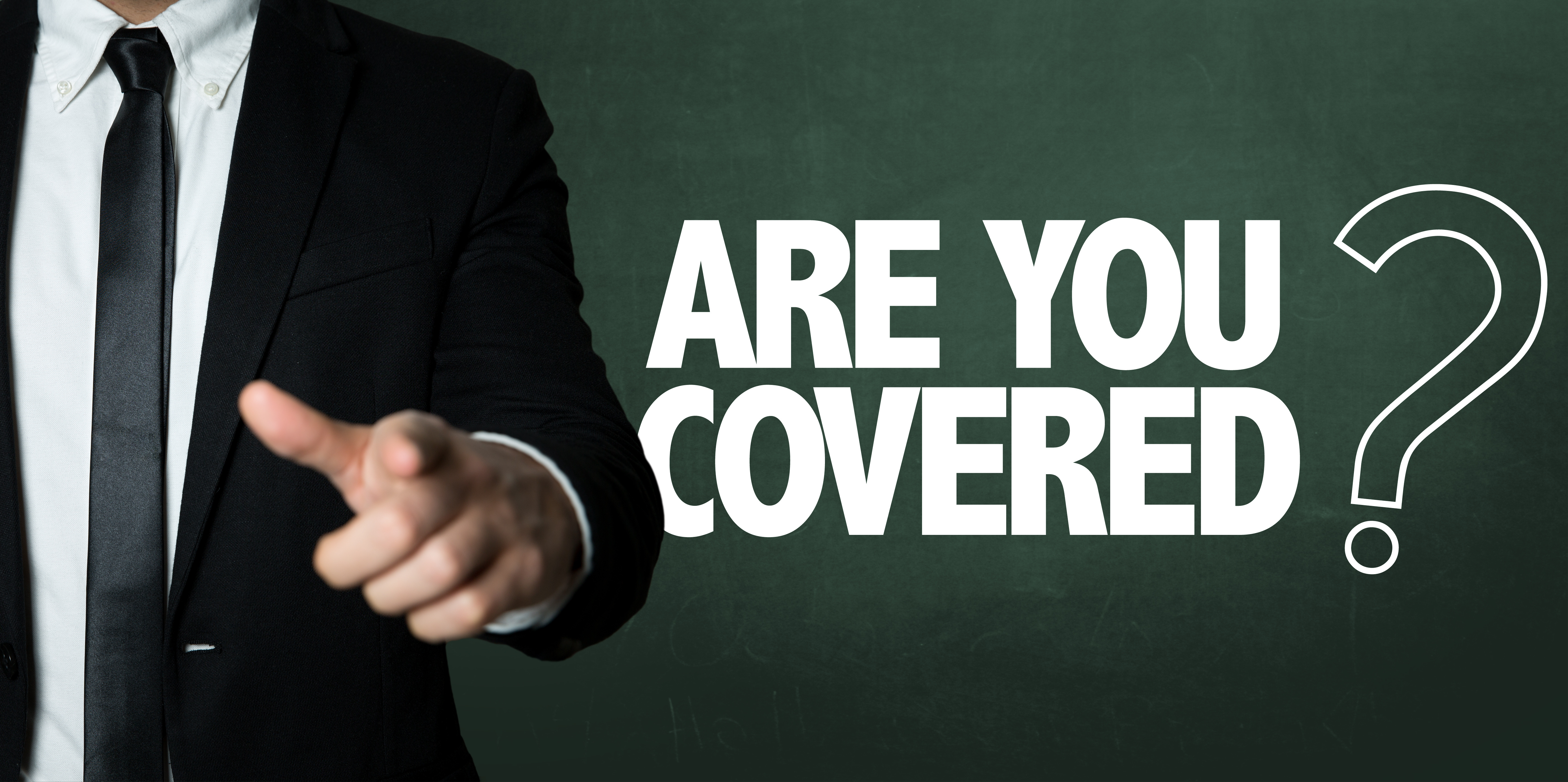 Business man pointing with the text: Are You Covered?
